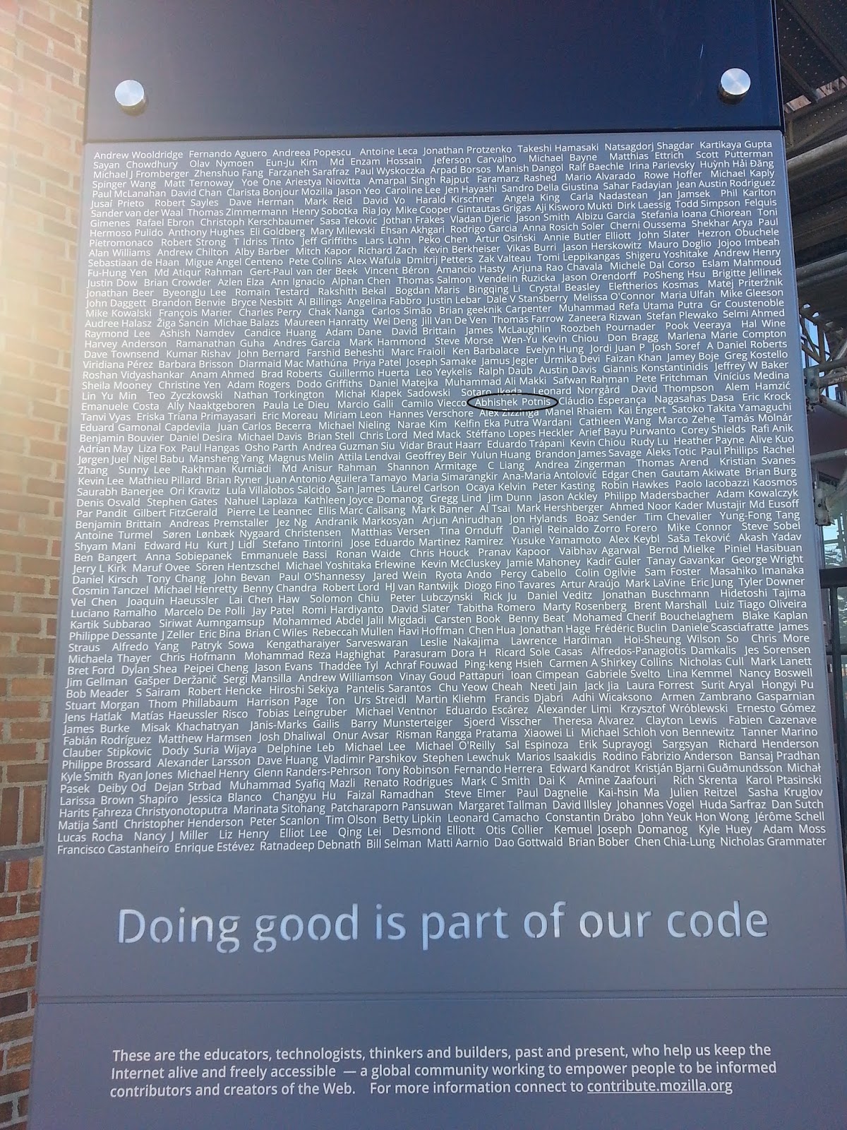 Mozilla has built a Mozillians’ Monument near its San Francisco Office Space, with the names of the contributors who have made significant contributions to Mozilla. It is indeed a great honor for me to have my name on it.